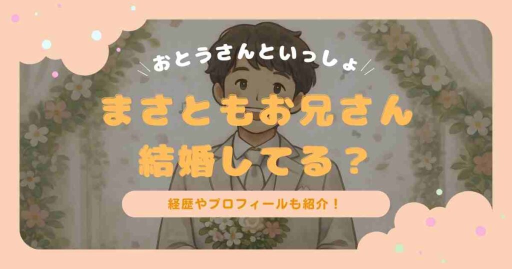 「望月雅友お兄さんは結婚してる?」「まさともお兄さんの経歴は?」「まさともお兄さんはいつ卒業する?」 おとうさんといっしょのお兄さんである望月雅友さんについて... おでかけ