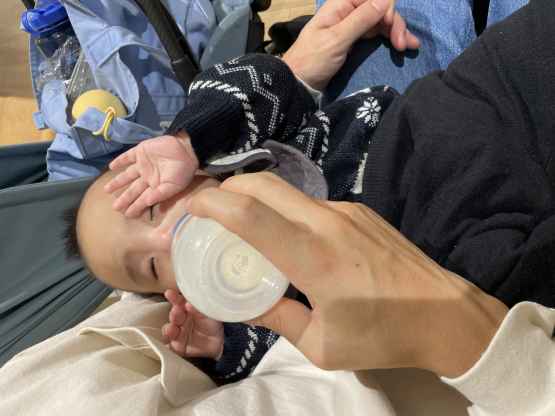 - 消毒された哺乳瓶に適切な量の粉ミルクを入れる